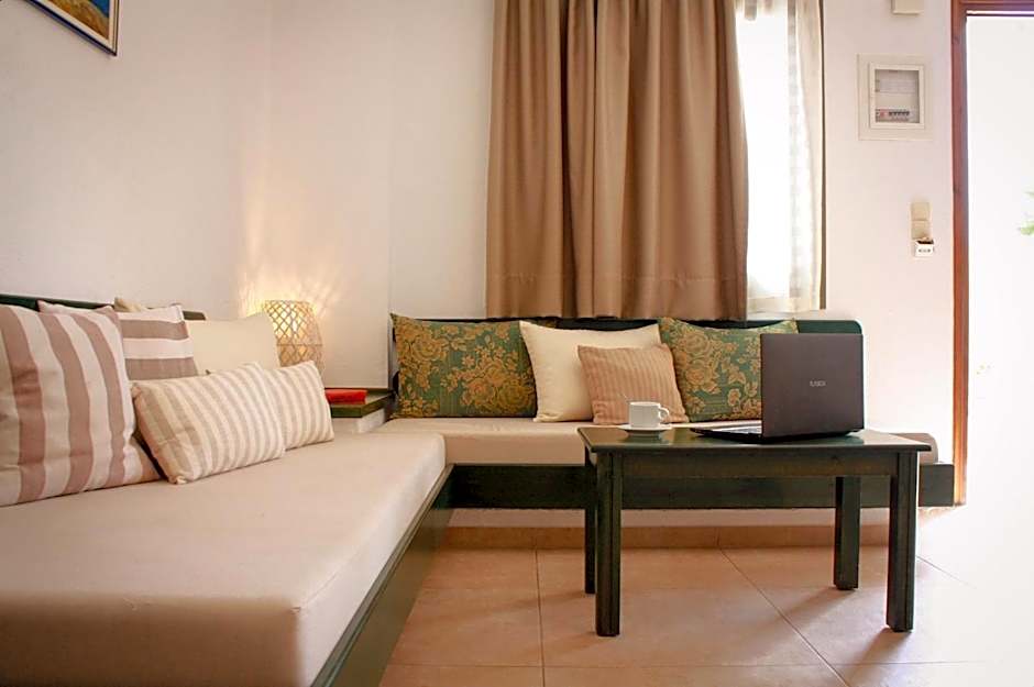 Step inside to find a welcoming atmosphere complete with modern amenities: from free wi-fi and room service to well-equipped kitchenettes with kitchenware. For those seeking leisure and entertainment, the sun deck, terrace, and bar provide perfect spots to unwind, while the garden offers a serene escape. If you're feeling active, take advantage of the optional golf course, or simply enjoy the fresh Greece air with the provided beach chairs and umbrellas.